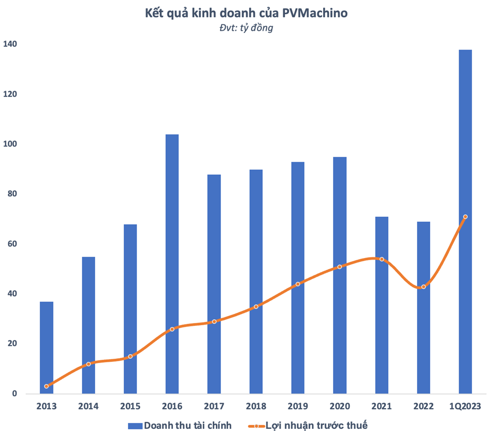Trong quý đầu năm 2023, nhờ thoái vốn VNS, doanh thu tài chính của PVMachino đã tăng vọt lên hơn 138 tỷ đồng. Nhờ đó, lợi nhuận trước thuế của doanh nghiệp này cũng đã tăng đột biến gấp 27 lần cùng kỳ, đạt hơn 71 tỷ đồng.