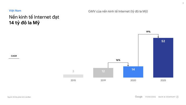Theo báo cáo này, đại dịch Covid-19 đã trở thành chất xúc tác đưa nền kinh tế số Việt Nam tăng trưởng 16% năm qua, đạt giá trị 14 tỷ USD và dự kiến đạt 52 tỷ USD năm 2025.