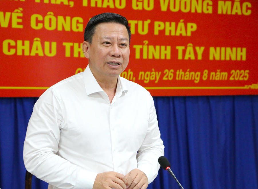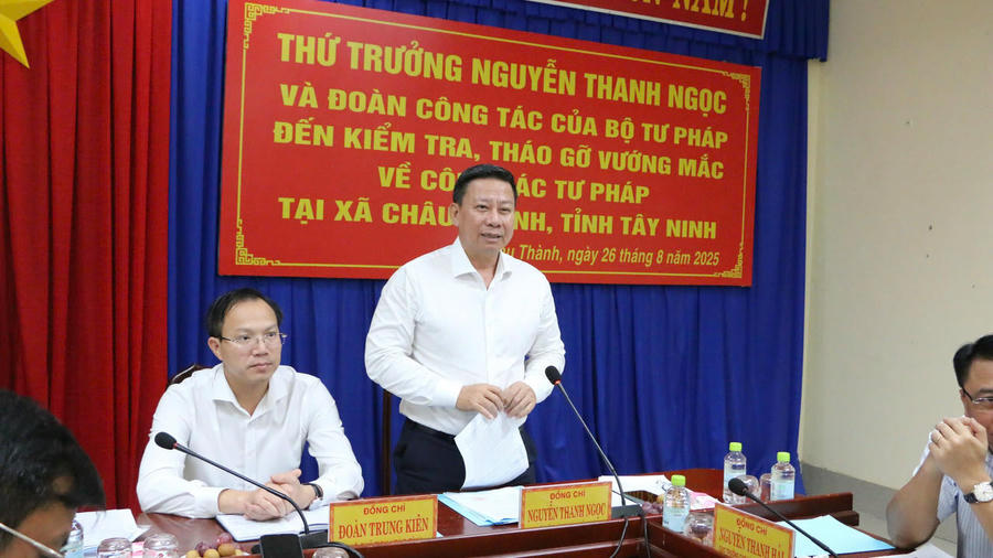Sáng 26/8, Đoàn công tác của Bộ Tư pháp do Thứ trưởng Nguyễn Thanh Ngọc làm trưởng đoàn đã có buổi kiểm tra, tháo gỡ những vướng mắc về tư pháp tại phường Long Hòa và xã Châu Thành. Cùng dự có ông Đoàn Trung Kiên – Phó Chủ tịch UBND tỉnh, lãnh đạo các sở, ngành, địa phương của Tây Ninh.
