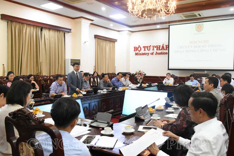 Tại Hội nghị, Quyền Cục trưởng Cục Công nghệ thông tin Phạm Quang Hiếu đã báo cáo sơ bộ về chuyển đổi số ngành Tư pháp. Theo đó, các vấn đề về: nhận thức số, hạ tầng số, cung cấp dịch vụ công trực tuyến, triển khai các ứng dụng chuyên ngành và phát triển dữ liệu số, kết nối, chia sẻ dữ liệu, đảm bảo an toàn, an ninh mạng, nguồn nhân lực số, phát triển kinh tế số và xã hội số trong thời gian qua đã đạt được những kết quả nhất định.
