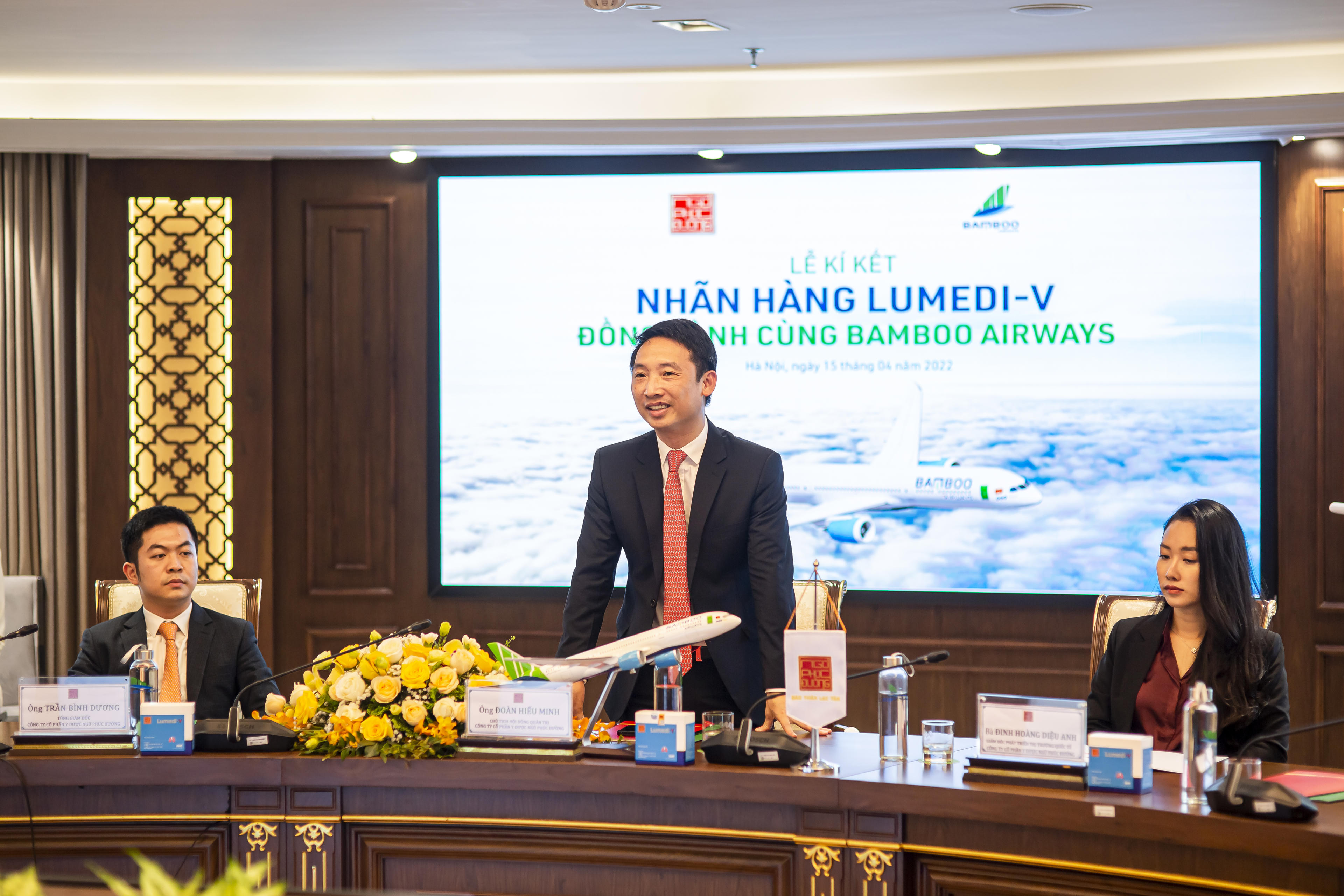 Theo đó Bamboo Airways tiếp nhận 1200 hộp Lumedi-V nhằm hỗ trợ toàn bộ đội ngũ tiếp viên hàng không phục vụ trực tiếp trên các chuyến bay nội địa và quốc tế của Hãng.
