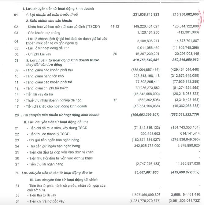 Thêm nữa, dòng tiền hoạt động đầu tư ghi nhận dương 85,7 tỷ đồng và dòng tiền tài chính dương 94,5 tỷ đồng, chủ yếu tăng vay nợ để bù đắp thâm hụt dòng tiền kinh doanh.