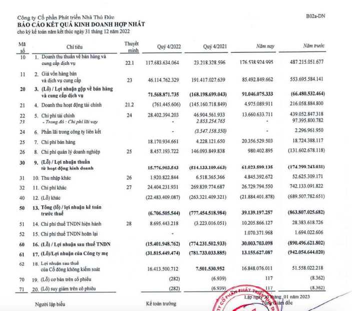 Thuduc House (TDH) báo lãi sau thuế 30 tỷ đồng năm 2022, kết thúc chuỗi 2 năm lỗ liên tiếp