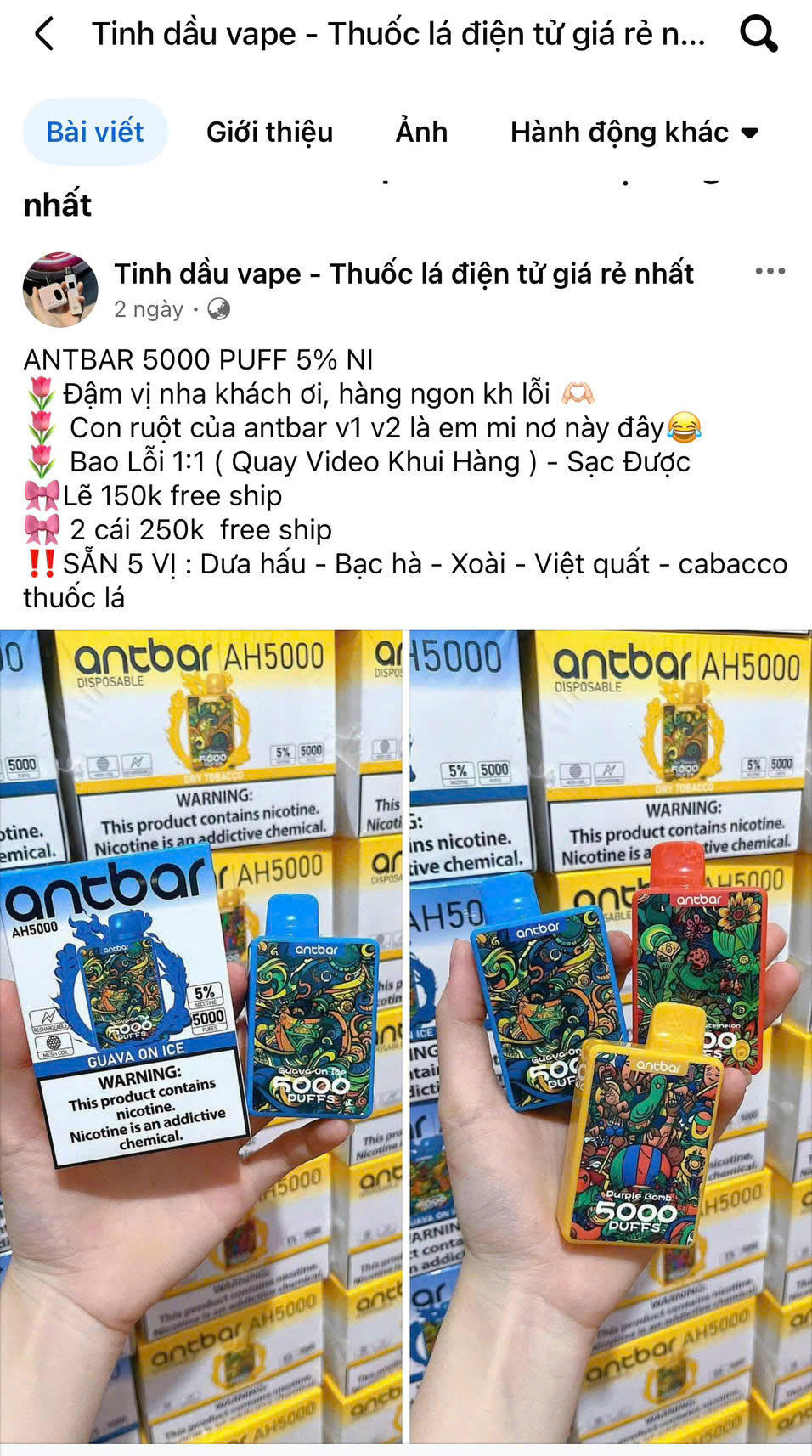 Nhiều trang mạng công khai đăng ảnh sản phẩm, bảng giá, địa chỉ giao dịch, cam kết hỗ trợ ship tận nơi, thậm chí còn không cần đặt cọc. Các sản phẩm thuốc lá điện tử với hình dáng và hương vị bắt mắt được chào mời hấp dẫn, đánh vào tâm lý người trẻ với lời lẽ như “ship hỏa tốc”, “giá rẻ”, khiến việc tiếp cận trở nên dễ dàng chỉ sau vài thao tác tìm kiếm.