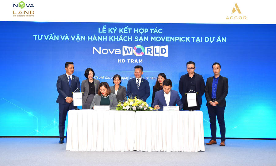 Ngày 10/12 tại Trung tâm triển lãm Novaland (Novaland Gallery, số 179 Hai Bà Trưng, Quận 3, TP.HCM) đã diễn ra lễ ký kết hợp đồng tư vấn, quản lý và vận hành khách sạn Movenpick - thương hiệu khách sạn của tập đoàn Accor tại dự án NovaWorld Ho Tram (Bà Rịa – Vũng Tàu). Khách sạn Movenpick tại phân kỳ Wonderland - NovaWorld Ho Tram có quy mô hơn 200 phòng, dự kiến sẽ được khởi công đầu năm 2021 và đi vào vận hành vào quý II/2023.