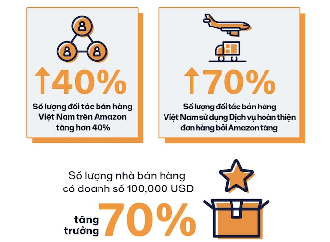 Các nhà bán lẻ Việt Nam đã bán hơn 17 triệu sản phẩm trên Amazon trong một năm (tính tới 31/8/2023), với giá trị tăng một nửa so với cùng kỳ 2022. Số nhà bán hàng Việt trên sàn này cũng tăng 40%.