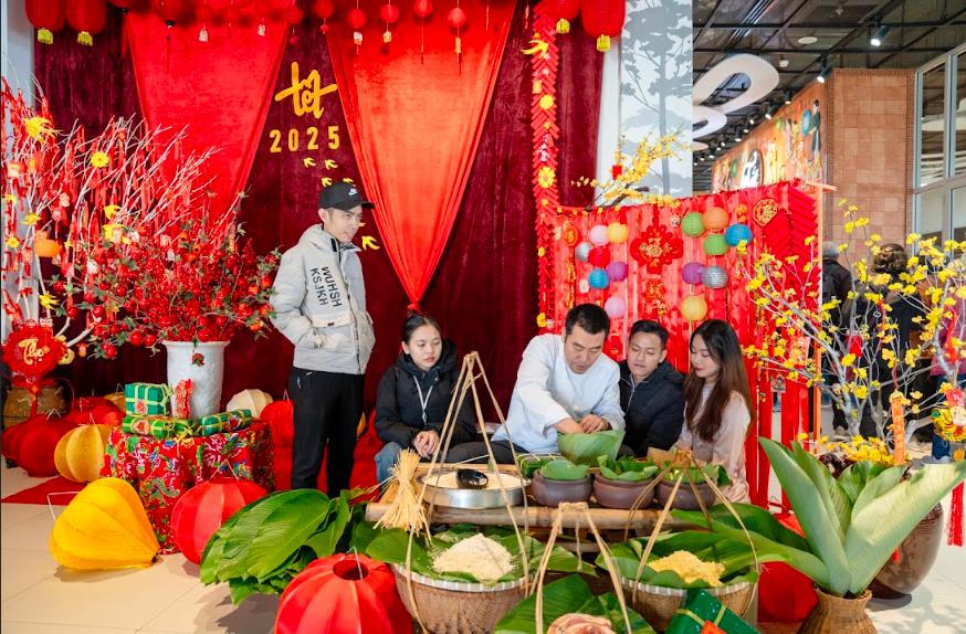 Du khách trong nước và quốc tế đến Bà Nà trong những ngày đầu xuân sẽ được trải nghiệm không gian Tết Việt truyền thống với những hình ảnh quen thuộc, gần gũi với người dân Việt Nam như mâm cỗ Tết, bánh chưng, bánh Tét, câu đối đỏ, hoa đào… hay những món đặc sản ngày Tết quen thuộc của người Việt Nam.