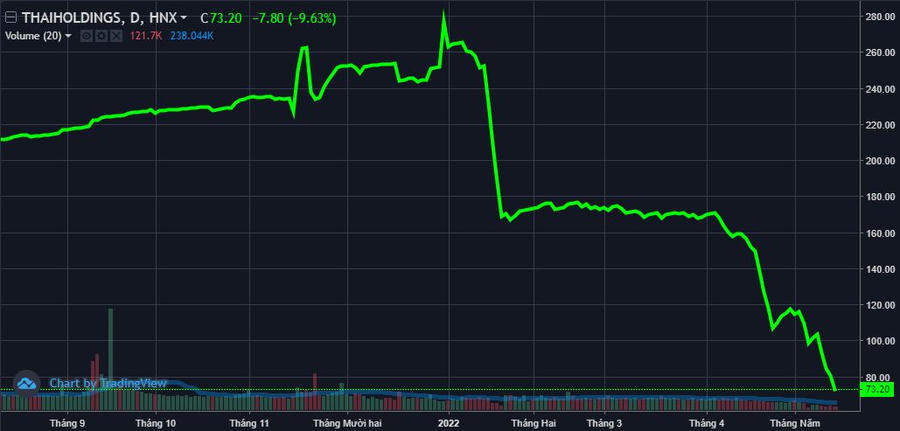 Lợi nhuận tụt dốc, không bất ngờ khi cổ phiếu THD lại rơi tự do trên sàn chứng khoán dù thị trường chung đã có dấu hiệu phục hồi. Cổ phiếu này tiếp tục mất thêm gần kịch biên độ phiên 17/5 qua đó rơi xuống mức 73.200 đồng/cổ phiếu, “bốc hơi” 74% so với đầu năm. Vốn hóa thị trường tương ứng bị thổi bay hơn 70.000 tỷ đồng.