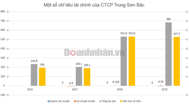 Trong những năm gần đây, Trung Sơn Bắc không ghi nhận doanh thu mà liên tục báo lỗ. Trong 3 năm từ 2017 đến 2019, công ty đã báo lỗ lần lượt là 4,9 tỷ đồng, 102 triệu đồng và 4,56 tỷ đồng.