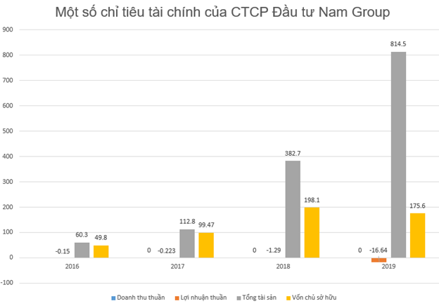 Trong giai đoạn từ năm 2016 đến năm 2019, Nam Group không ghi nhận doanh thu và liên tục báo lỗ. Chỉ tính riêng trong năm 2019, Nam Group đã báo lỗ thuần lên tới 16,64 tỷ đồng. Tính đến ngày 31/12/2019, tổng tài sản của Nam Group đạt 814 tỷ đồng, cao gấp 4,6 lần so với vốn chủ sở hữu – 175,6 tỷ đồng.