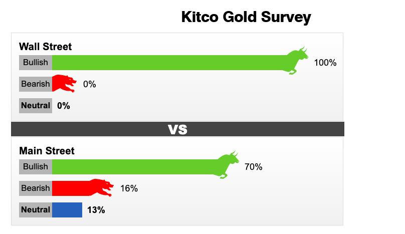 Trong 14 nhà phân tích Phố Wall đã tham gia cuộc khảo sát vàng của Kitco News, tất cả đều dự đoán giá vàng thế giới sẽ cao hơn trong ngắn hạn.
