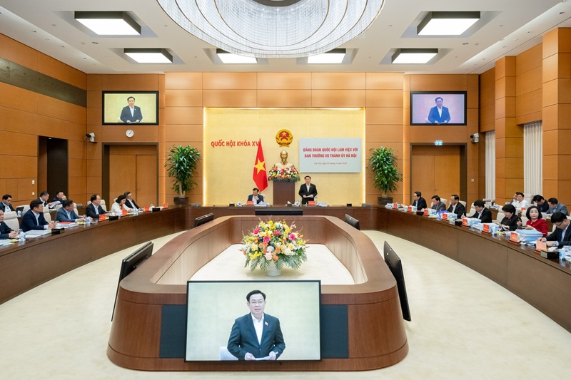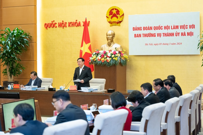 Chiều 5/3, tại Nhà Quốc hội, đồng chí Vương Đình Huệ, Ủy viên Bộ Chính trị, Bí thư Đảng đoàn Quốc hội, Chủ tịch Quốc hội đã chủ trì buổi làm việc giữa Đảng đoàn Quốc hội với Ban Thường vụ Thành ủy Hà Nội để cho ý kiến về dự án Luật Thủ đô (sửa đổi).