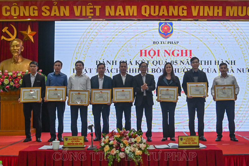 Nhân dịp này, Hội nghị đã tặng Bằng khen của Bộ trưởng Bộ Tư pháp cho các tập thể, cá nhân có thành tích xuất sắc trong 5 năm triển khai thi hành Luật TNBTCNN.