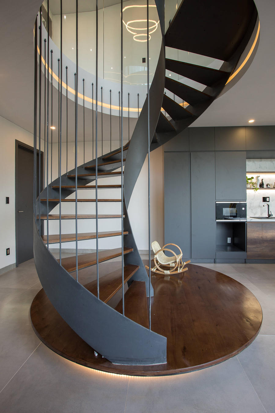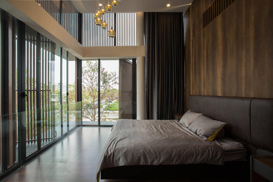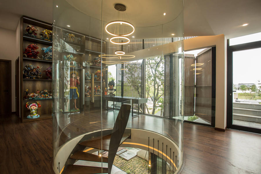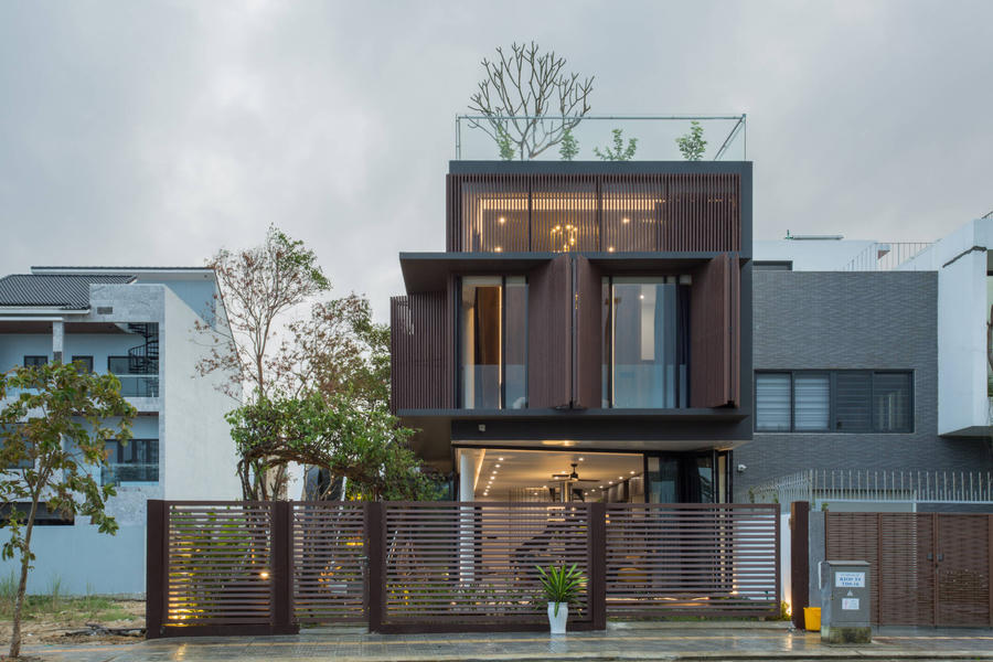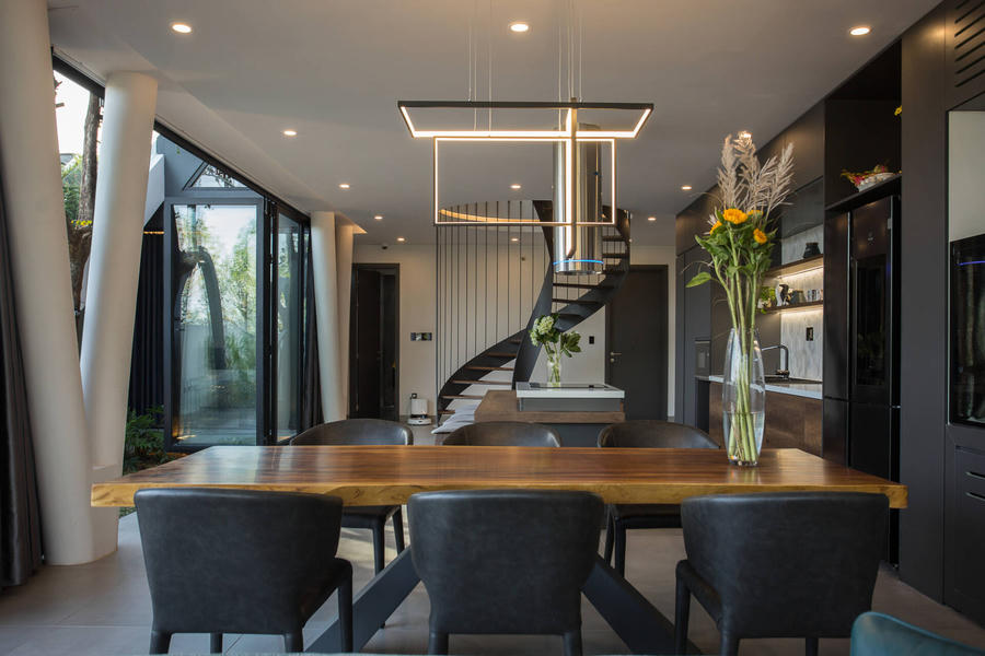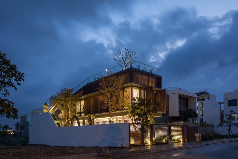 Ngôi nhà House of One Piece có diện tích 250m2 tại Đà Nẵng này là tổ ấm của cặp vợ chồng trẻ và hai con nhỏ.Với mong muốn sống trong căn hộ thân thiện với môi trường, nhóm kiến trúc sư đã khéo léo tận dùng nguồn năng lượng tự nhiên như nắng, gió và nước để vận dụng vào sinh hoạt hàng ngày của gia chủ. Tầng một của ngôi nhà gồm phòng khách, phòng bếp, phòng ngủ cho khách, phòng kho và phòng giặt. Với việc không sử dụng vách ngăn phân chia khu vực mà thay vào đó tận dụng bàn ăn tạo sự chuyển tiếp giữa phòng khách và khu vực nấu nướng đã tạo ra tổ hợp không gian thông suốt, linh hoạt và liền mạch.Để tận dụng năng lượng tự nhiên của nắng, gió, kiến trúc sư sử dụng hệ thống cửa trượt lớn nhằm gắn kết không gian bên trong với khu vực bên ngoài.Cầu thang xoắn dẫn lên tầng 2 vừa đáp ứng về mặt công năng sử dụng vừa mang tính thẩm mỹ, khiến không gian tầng một có điểm nhấn.Tầng 2 là không gian của hai phòng ngủ, phòng làm việc và phòng thờ. Giống như tầng một, các căn phòng trên tầng được kết nối với thiên nhiên bên ngoài nhờ hệ cửa kính lớn.Tuy nhiên, kiến trúc sư bổ sung thêm hệ cửa lam giúp chắn nắng, chắn gió và tạo không gian riêng tư cho gia chủ.Phòng ngủ được thiết kế trần, cao, cửa kính lớn giúp không gian thoáng và ngập sáng. Thiết kế nổi bật nhất của ngôi nhà là khu vực mái. Một vườn rau được dựng lên vừa tạo không gian xanh mát mắt vừa là nguồn cung cấp thực phẩm sạch cho gia đình. Tại đây, đội ngũ thiết kế còn làm hệ thống tưới và thu hồi nước tự động. Khi có nước mưa, hệ thống sẽ thu nhận, đưa về bể chứa ngầm và tái sử dụng tuần hoàn. Việc trồng cây trên mái không chỉ giúp có thêm không gian xanh mà còn phần nào giảm bức xạ nhiệt lên mái bê tông, giữ bề mặt bê tông luôn ổn định về nhiệt, tránh nứt gãy.
