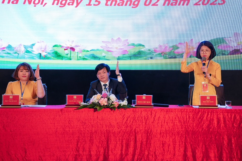Đoàn Chủ tịch điều hành Đại hội gồm có các đồng chí Nguyễn Duy Thắng, Chủ tịch Công đoàn cơ sở Cục Kiểm tra VBQPPL; đồng chí Trần Thanh Loan, Phó Chủ tịch Công đoàn cơ sở Cục và đồng chí Trần Thu Giang, Uỷ viên BCH Công đoàn cơ sở Cục nhiệm kỳ 2020 – 2023.