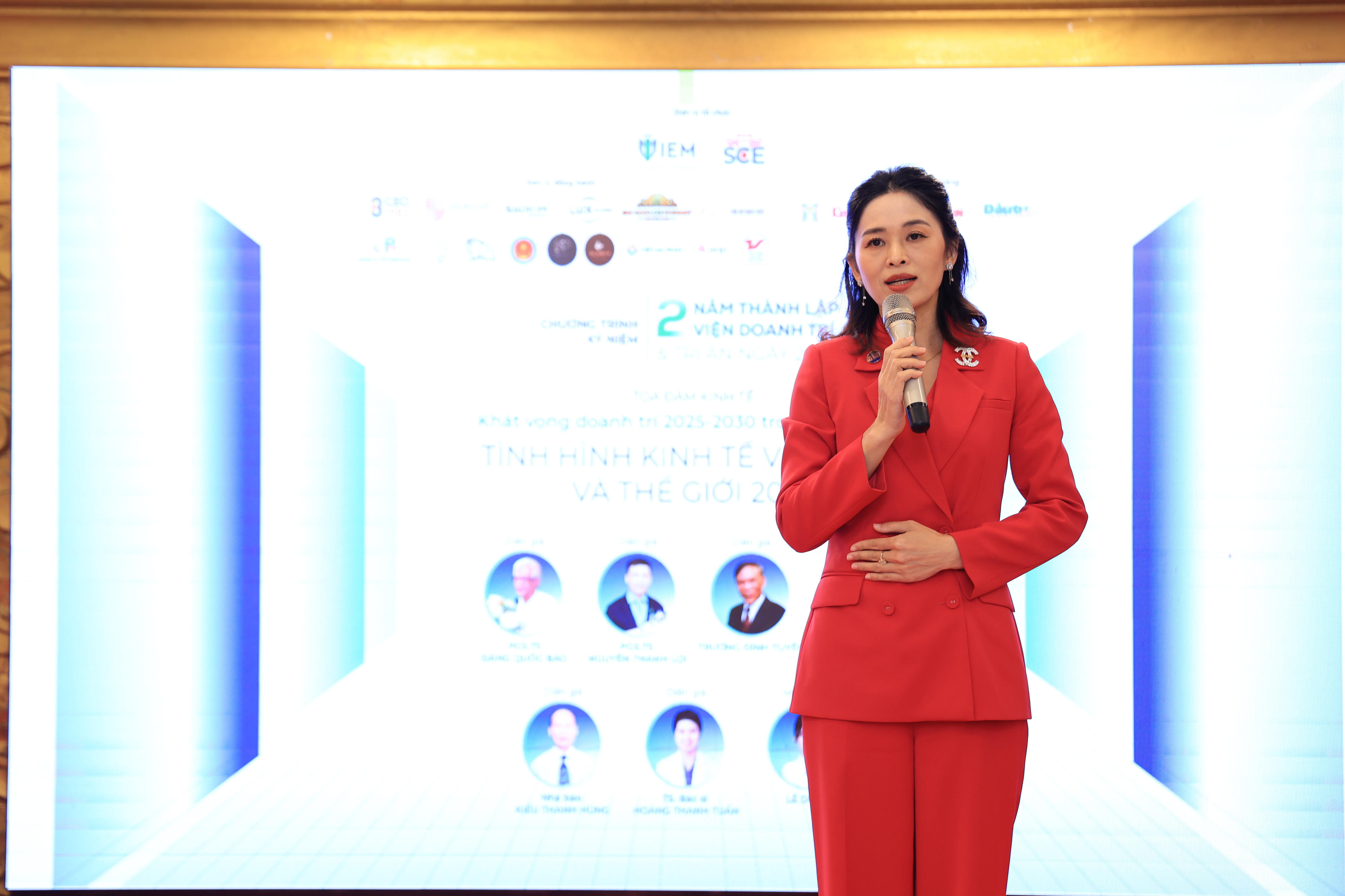 Phát biểu khai mạc tọa đàm, bà Lê Dung - Viện trưởng Viện Doanh Trí, Tổng Giám đốc Công ty CP Đào tạo và Phát triển nhân lực DGroup, Chủ tịch CLB CEO 1983 cho biết: “Viện Doanh Trí được thành lập với sứ mệnh “Khai Doanh Trí, Chấn Doanh Trí, Hậu Doanh Sinh”, trở thành cầu nối tri thức giữa doanh nghiệp và các chuyên gia hàng đầu, góp phần thúc đẩy sự phát triển bền vững và toàn diện cho cộng đồng doanh nghiệp Việt Nam. Chúng tôi hướng tới mục tiêu xây dựng một hệ sinh thái đổi mới sáng tạo, nơi các ý tưởng kinh doanh tiên phong được hỗ trợ để biến thành hiện thực. Đồng thời, giúp doanh nghiệp nắm bắt cơ hội trong kỷ nguyên chuyển đổi số và hội nhập quốc tế”.