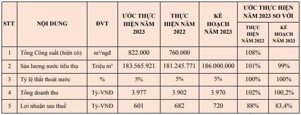 Lãi sau thuế của Biwase ước đạt 601 tỷ đồng, giảm 12% so với năm 2022 và thực hiện hơn 83% kế hoạch năm.
