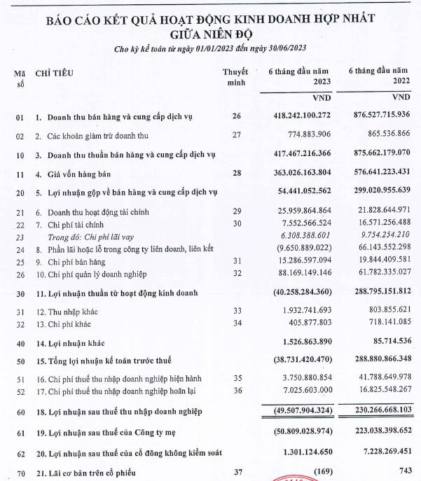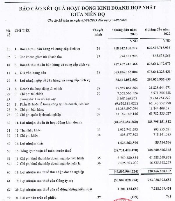 Giá vốn giảm hơn 213 tỷ đồng, lùi về mức 363 tỷ đồng. Lợi nhuận gộp giảm cực mạnh tới 81,8% so với nửa đầu năm ngoái, về mức 54,4 tỷ đồng.