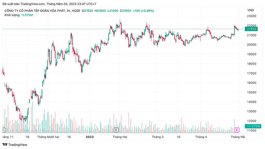 Sự trở lại của Hoà Phát với việc báo lãi 400 tỷ trong quý 1/2023 cũng tác động đến cổ phiếu. Với thị giá HPG đóng cửa phiên cuối tháng 4 ở mức 21.650 đồng/cp, "vua thép" Trần Đình Long bỏ túi thêm 4% tài sản và nắm chắc vị trí người giàu thứ 2 TTCK.