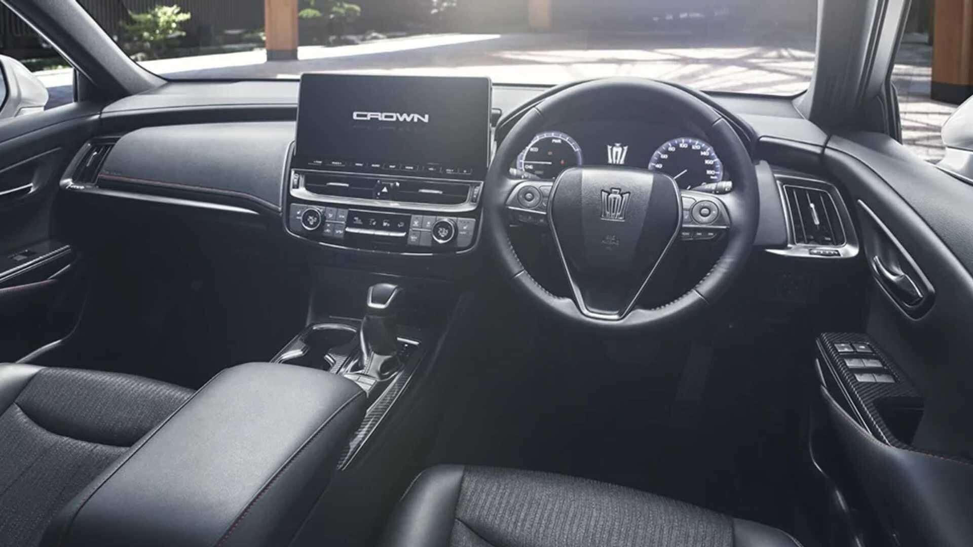 Điểm nhấn khoang nội thất nằm ở màn hình cảm ứng 12,3 inch đặt nổi cho hệ thống thông tin giải trí, thay cho màn hình đôi ở bản cũ. Màn hình trang bị các dịch vụ T-connect của Toyota, hỗ trợ kết nối Apple CarPlay và Android Auto. Nhờ lắp màn hình mới, lỗ thông gió bố trí lại đặt nằm ngang ở giữa bảng điều khiển.