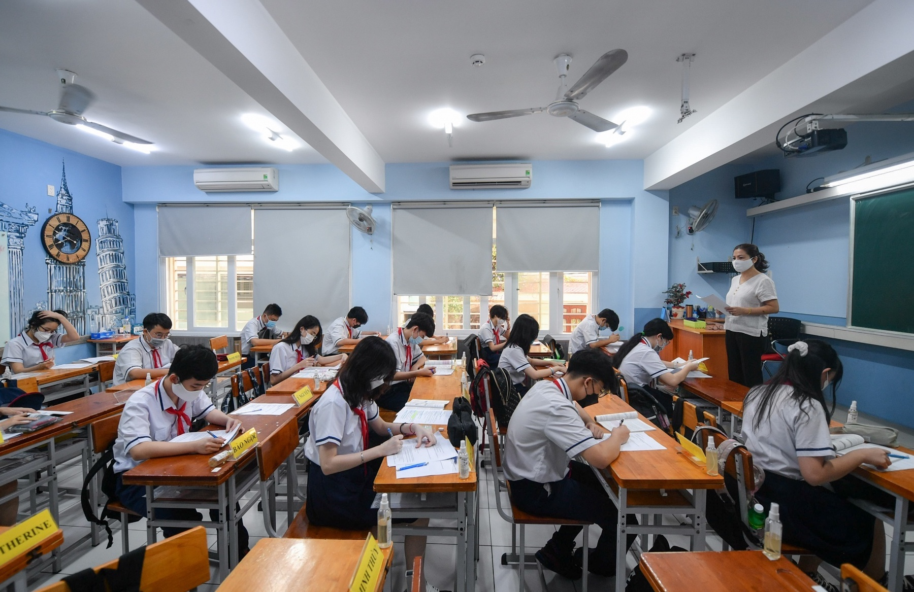 Học sinh lớp 12 tại trường có mức độ dịch cấp độ 1, 2 thuộc quận Hai Bà Trưng, Tây Hồ được đến trường theo kế hoạch. Riêng huyện Thanh Trì, học sinh lớp 9 và lớp 12 tại trường thuộc xã, phường vùng xanh, vùng vàng được phép trở lại lớp.