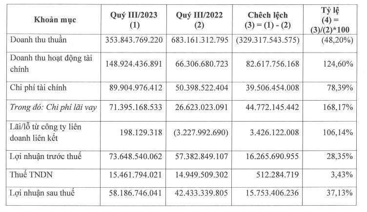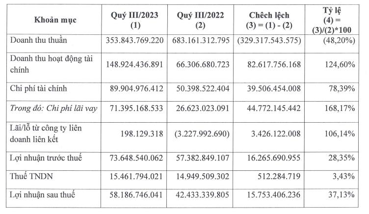 Trong kỳ, doanh thu tài chính tăng 124,6% lên 148,9 tỷ đồng, chủ yếu nhờ lãi đầu tư cổ phiếu, trái phiếu. Song, chi phí tài chính tăng 78,3% lên 89,9 tỷ đồng do chi phí lãi vay tăng.