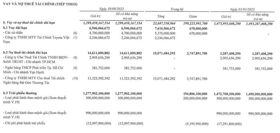 Tổng nợ phải trả của Tracodi tính đến cuối quý III/2023 là 5.397 tỷ đồng, giảm 13,2% so với đầu năm. Tổng vay và nợ tài chính ngắn, dài hạn của TCD là 2.136 tỷ đồng, trong đó có 1.277,9 tỷ đồng là dư nợ trái phiếu.