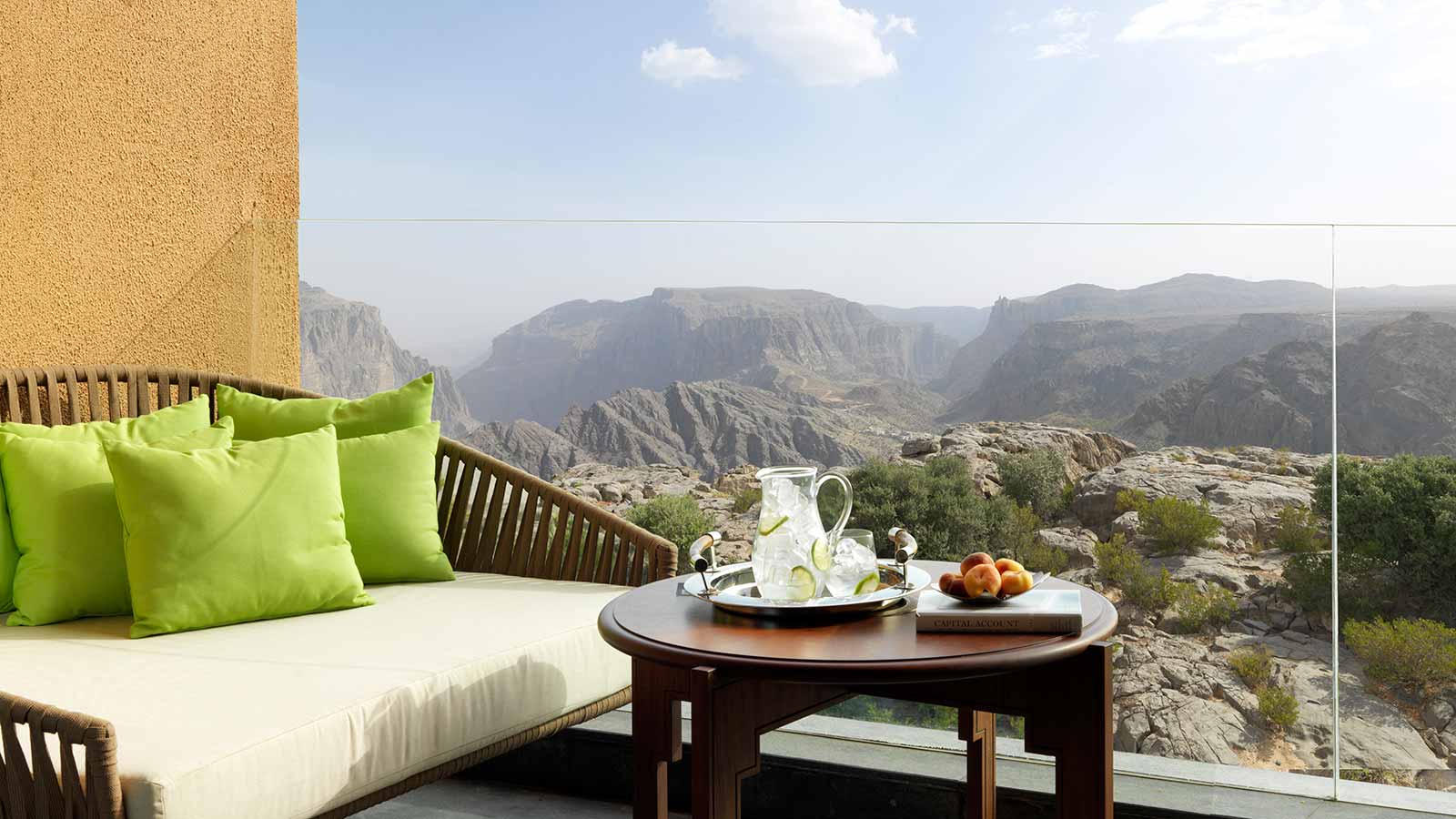 Rất nhiều bất ngờ xa xỉ đang chờ đón bạn tại một địa điểm khá “hiểm hóc” – hẻm núi Saiq hùng vĩ thuộc quốc gia Oman vùng Trung Đông. Tọa lạc trên cao nguyên đá vốn chỉ có thể đi lại bằng phương tiện 4 bánh, khu nghỉ dưỡng 5 sao Anantara Al Jabar Al Akhdar hứa hẹn một chốn ẩn náu an nhiên tuyệt đối cho du khách.