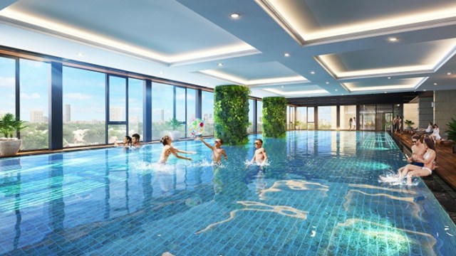 Khối đế 5 tầng của tháp dân cư có không gian lớn cho các tiện ích hiện đại như trung tâm thương mại, nhà trẻ, quán café, nhà hàng, khu bể bơi bốn mùa, phòng tập gym, yoga, phòng đọc sách, khu sinh hoạt cộng đồng… tạo thành một tổ hợp tiện ích liên hoàn, phù hợp với cộng đồng cư dân trẻ trung, năng động.