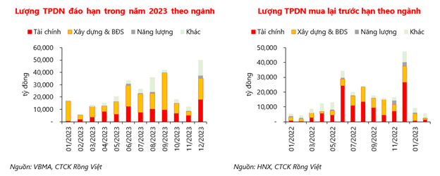 Riêng quy mô của lĩnh vực bất động sản và xây dựng đã chiếm một nửa trong số trái phiếu đáo hạn năm 2023, trong đó có khoảng 85.000 tỷ đồng phải trả trong giai đoạn đỉnh điểm.