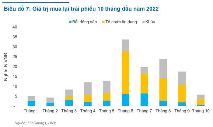 Theo FiinRatings, giá trị mua lại trái phiếu doanh nghiệp trong 10 tháng qua lên tới 143.440 tỷ đồng, tăng 42% so với 10 tháng 2021 và tập trung vào các trái phiếu cận đáo hạn. Doanh nghiệp bất động sản và tổ chức tín dụng là hai lĩnh vực có khối lượng mua lại trái phiếu lớn nhất.
