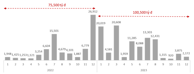 Tại TCBS, có gần 29.000 lượt khách hàng bán lại trái phiếu trên iConnect năm 2023 với lãi suất lời hơn so với lúc mua. Trong đó có gần 2.000 khách hàng hưởng lãi suất trái phiếu chênh lên đến hơn 3%.