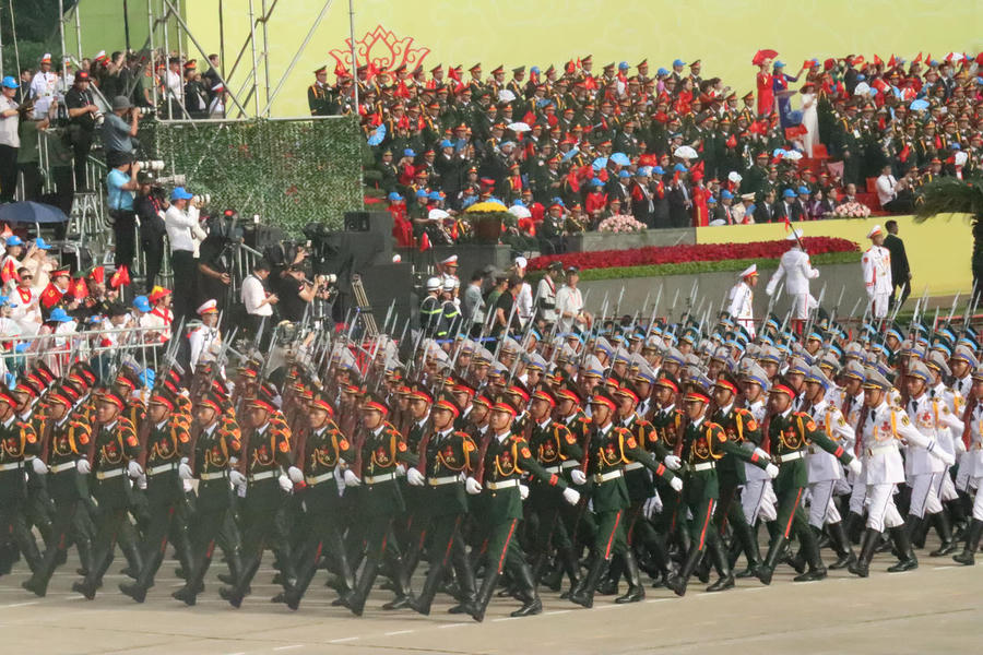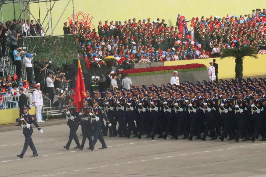 Sau bài diễn văn của Tổng Bí thư, Thượng tướng Nguyễn Văn Nghĩa, Phó Tổng Tham mưu trưởng QĐND Việt Nam chỉ huy Chương trình diễu binh, diễu hành. Các khối diễu binh, diễu hành lần lượt tiến qua lễ đài Quảng trường Ba Đình trên nền nhạc bài “Tiến về Hà Nội” của nhạc sĩ Văn Cao và lời thuyết minh về các lực lượng. Đặc biệt, buổi Lễ năm nay là năm đầu tiên có các lực lượng vũ trang diễu binh trên biển tại Căn cứ quân sự Cam Ranh, tỉnh Khánh Hòa.