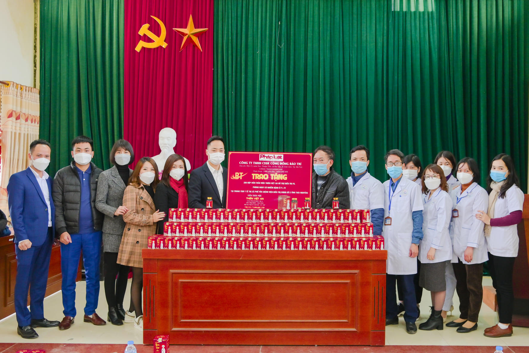 Thời gian vừa qua, Công ty TNHH CSSK cộng đồng Bảo Trí đã tổ chức nhiều chương trình trao tặng miễn phí sản phẩm Viên thảo mộc Thiên Việt An đến các bệnh viện, cơ sở thu dung điều trị Covid-19 và các đơn vị tuyến đầu chống dịch trên địa bàn cả nước như: Hà Nội, Phú Thọ, Hưng Yên... với hàng ngàn hộp sản phẩm đã được trao đi, hỗ trợ tích cực cho bệnh nhân F0 trong quá trình điều trị Covid-19 cũng như dự phòng nguy cơ nhiễm bệnh cho các F1, F2.