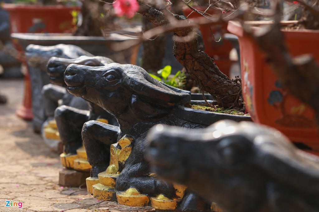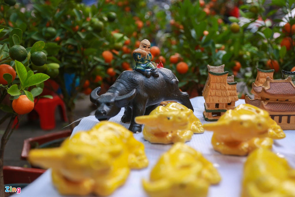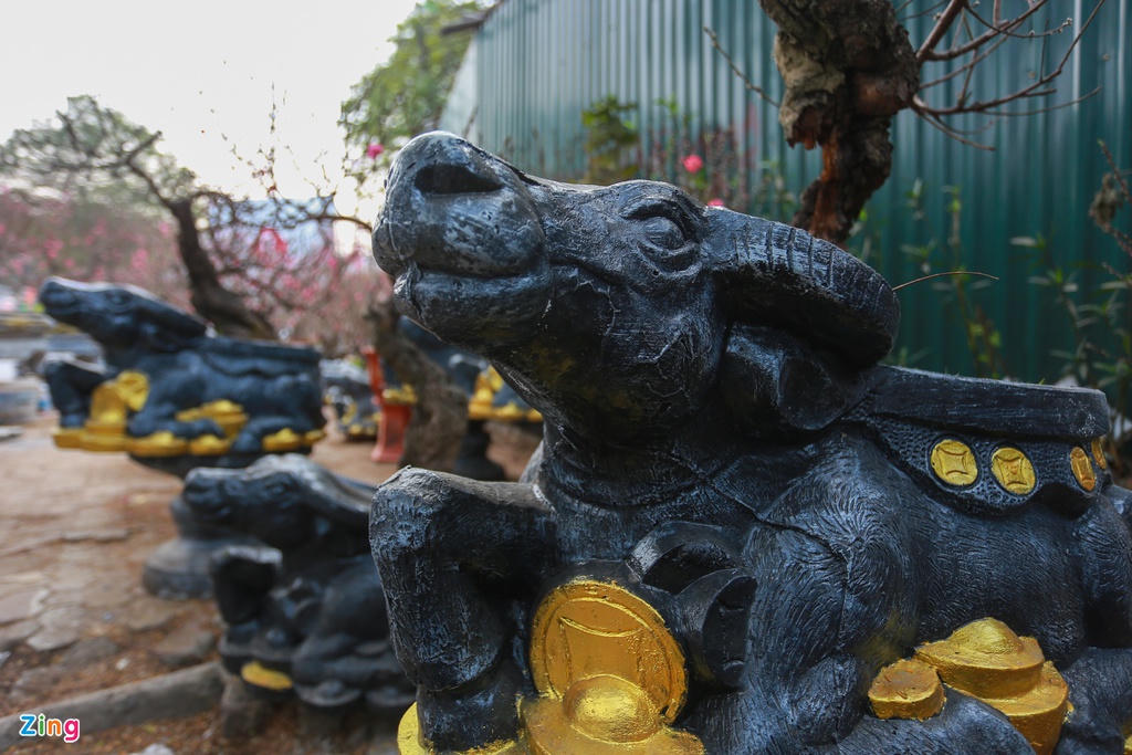 Trâu ôm tiền vàng cõng đào, mai trắng bọc rêu tràn về chợ hoa Tết