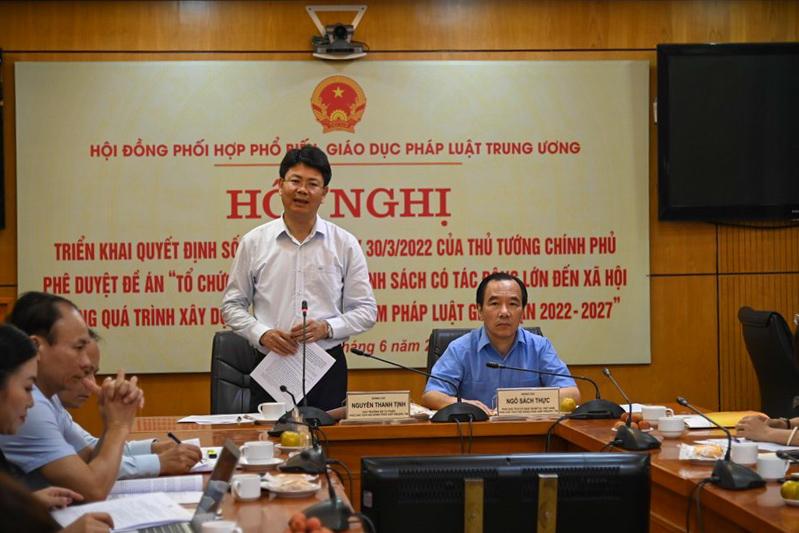 Thực hiện các nhiệm vụ được giao tại Đề án, Bộ Tư pháp đã chủ trì, phối hợp với các bộ, ngành, cơ quan thông tin, báo chí, Cổng Thông tin điện tử Chính phủ xây dựng chương trình, nội dung truyền thông về một số dự thảo VBQPPL có tác động lớn như Dự thảo Luật Kinh doanh bất động sản (sửa đổi); Luật Thực hiện dân chủ ở cơ sở; Luật Công chứng (sửa đổi); Luật sửa đổi, bổ sung một số điều của Luật Đấu giá tài sản... Nhiều bộ trưởng, trưởng ngành đã chủ động phối hợp với các cơ quan truyền thông tổ chức các tọa đàm, diễn đàn cung cấp thông tin về chính sách được sửa đổi, bổ sung trong các đạo luật, qua đó tạo đồng thuận trong xã hội đối với nội dung dự thảo, giúp nâng cao chất lượng xây dựng, ban hành VBQPPL.