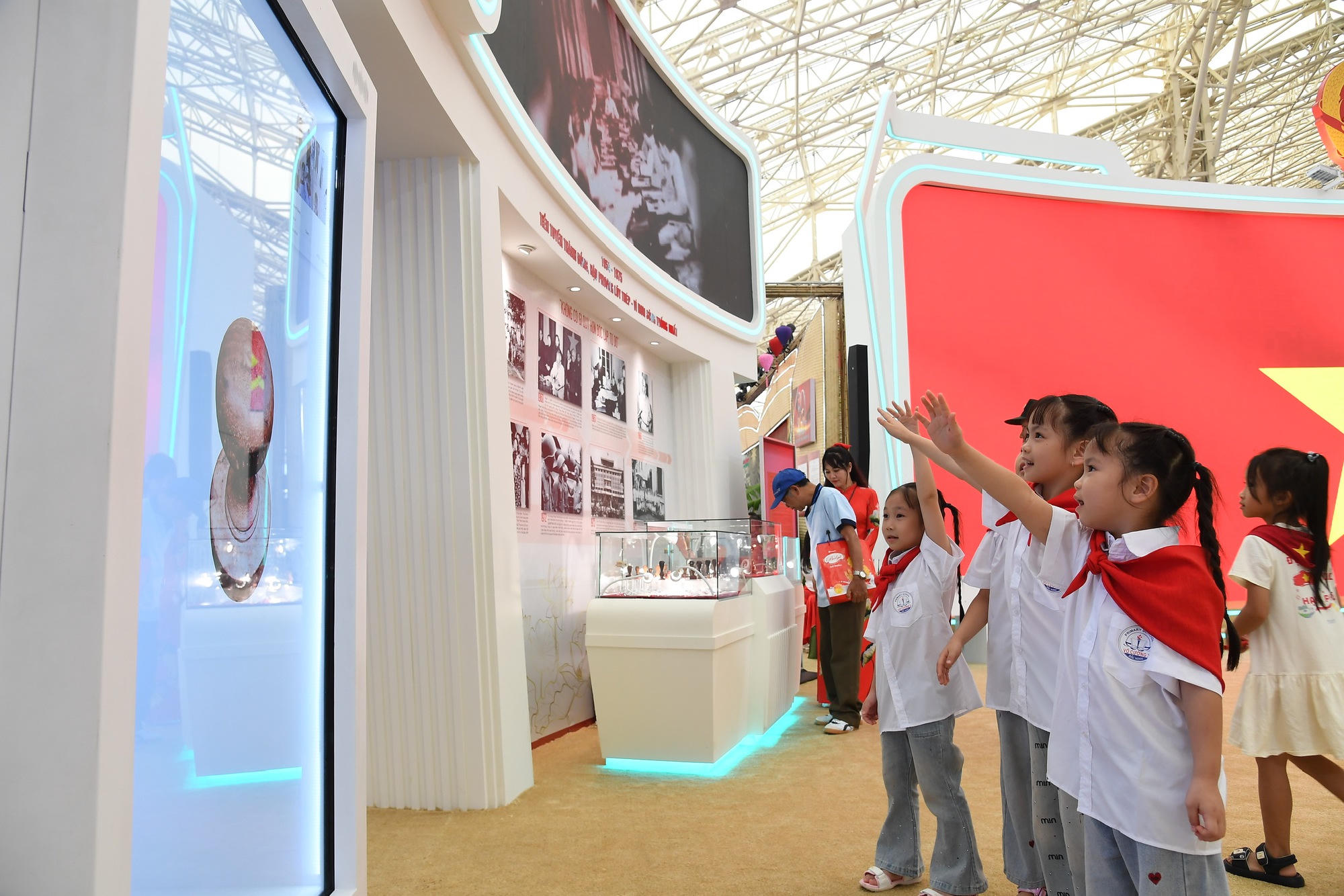 Bước vào không gian trưng bày ấn tượng, hiện đại, giữa trung tâm của gian hàng trưng bày Triển lãm sẽ là các màn hình LED giới thiệu dấu ấn nổi bật của các lĩnh vực sau 80 năm phát triển, gồm: Quốc phòng, Công an nhân dân, Công thương-Xây dựng-Giao thông, Y tế-an sinh xã hội, Văn hóa, Giáo dục, Đối ngoại, Nông nghiệp.