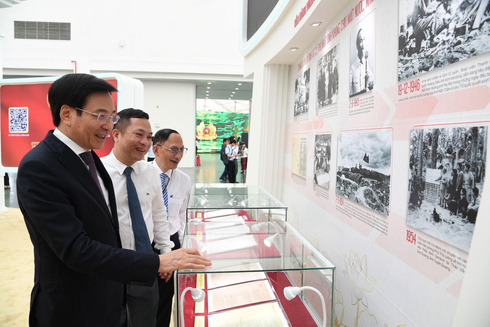 Gian Triển lãm "Văn phòng Chính phủ - 80 năm đồng hành cùng dân tộc" vinh dự được đón Ủy viên Bộ Chính trị, Phó Thủ tướng Thường trực Chính phủ Nguyễn Hòa Bình; Ủy viên Trung ương Đảng, Bộ trưởng, Chủ nhiệm Văn phòng Chính phủ (VPCP) Trần Văn Sơn... đã tới tham quan.