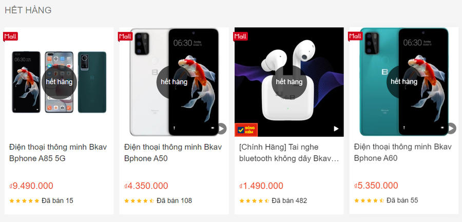 Gian hàng Bkav Bphone Official Store trên trang TMĐT Shopee cũng không còn bán các sản phẩm trên. Nhìn vào lượt bán, chúng ta có thể thay các mẫu Bphone dòng A có lượt bán khá khiêm tốn, trong khi đó AirB bán được 482 chiếc trên Shopee kể từ khi ra mắt.