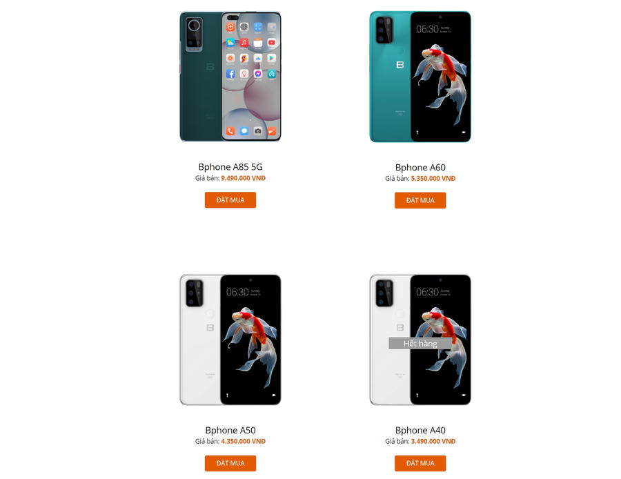 Dạo một vòng website Bphone.vn của Bkav, có thể thấy Bkav vẫn đang bán 3 model dòng A là Bphone A50, A60 và A85 5G, giá bán lần lượt là 4,35 triệu đồng, 5,35 triệu đồng và 9,49 triệu đồng. Model A40 đã hết hàng, người dùng không thể tìm thấy các model dòng B trên website này. Ngoài ra, bộ đôi tai nghe AirB cũng không trong tình trạng hết hàng.