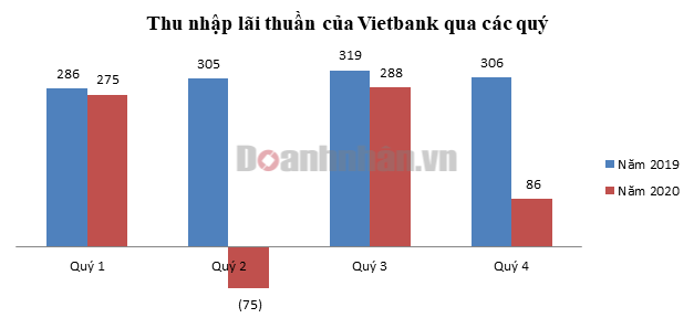 Tại kỳ báo cáo gần nhất, mặc dù thu nhập mua bán chứng khoán rất cao, đạt 252 tỷ đồng nhưng Vietbank phải nhờ đến 18 tỷ hoàn nhập dự phòng mới đạt được mức lợi nhuận khiêm tốn 29 tỷ trong cả quý 4/2020.