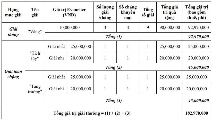 Khuyến mại áp dụng với khách hàng có giao dịch sản phẩm chứng chỉ quỹ mở do VPBankS phân phối trên nền tảng NEO Invest hoặc nền tảng ngân hàng số VPBank NEO. Chương trình gồm 3 nhóm giải thưởng: Vàng (3 giải/tháng, tương đương 9 giải/toàn chương trình), Tích lũy (hai giải/toàn chương trình) và Tăng trưởng (hai giải/toàn chương trình). VPBankS sẽ xét thưởng cho khách hàng có tổng giá trị đầu tư hoặc tỷ lệ tăng trưởng tài sản quỹ cao nhất, đáp ứng điều kiện tối thiểu theo từng nhóm giải thưởng.