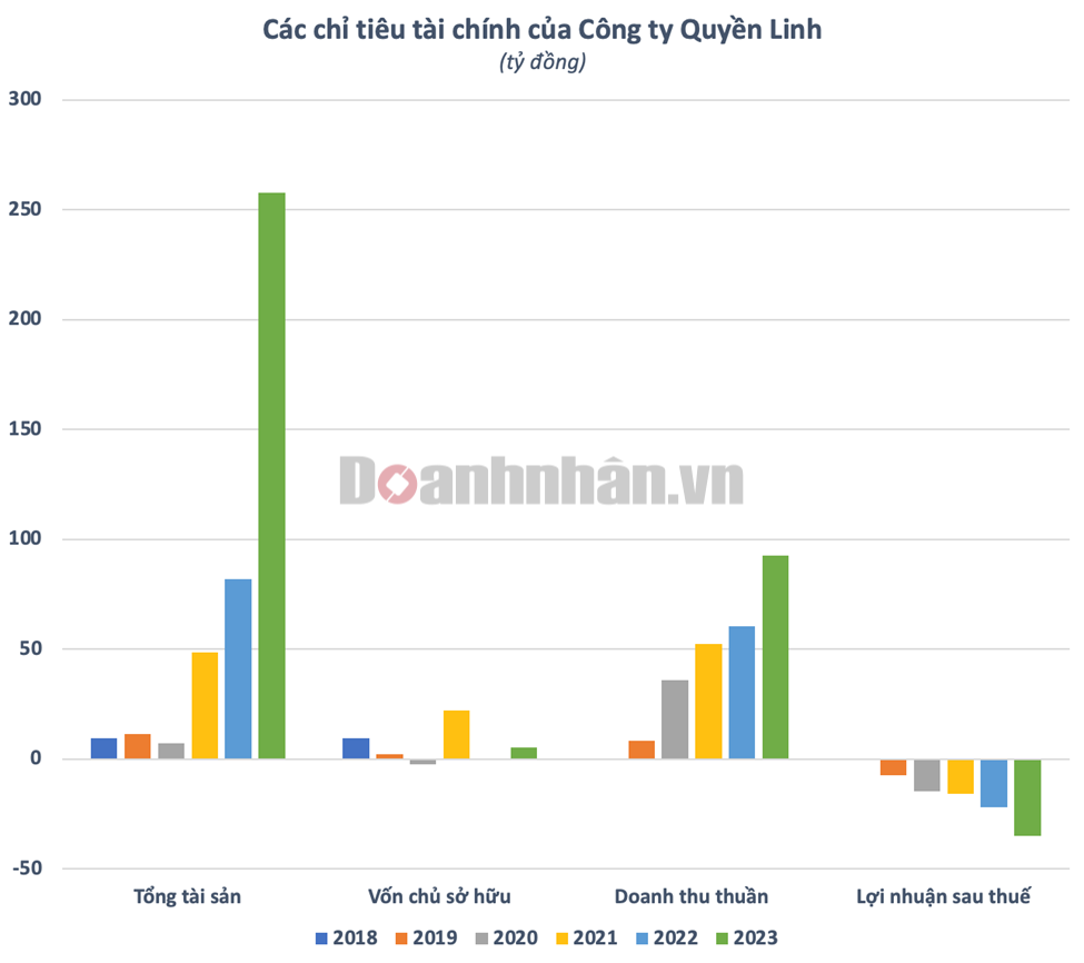 Những năm qua, vốn chủ sở hữu của công ty trồi sụt thất thường do lỗ luỹ kế và các hoạt động tăng vốn điều lệ. Mức vốn chủ sở hữu cao nhất Công ty Quyền Linh ghi nhận tại ngày cuối năm là vào năm 2021 nhưng cũng chỉ hơn 22 tỷ đồng. Đến cuối năm 2023, vốn chủ sở hữu công ty này chỉ ở mức 5,4 tỷ đồng.