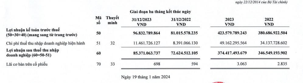Thu nhập khác cũng là điểm đáng lưu ý khi đem về hơn 2,8 tỷ đồng lợi nhuận, trong khi quý IV/2022 lỗ hơn 6 tỷ đồng.