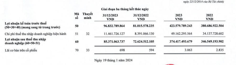 Giá vốn hàng bán ghi nhận ở 532,8 tỷ đồng, giảm nhẹ so với mức 533,6 tỷ đồng ở quý IV/2022.