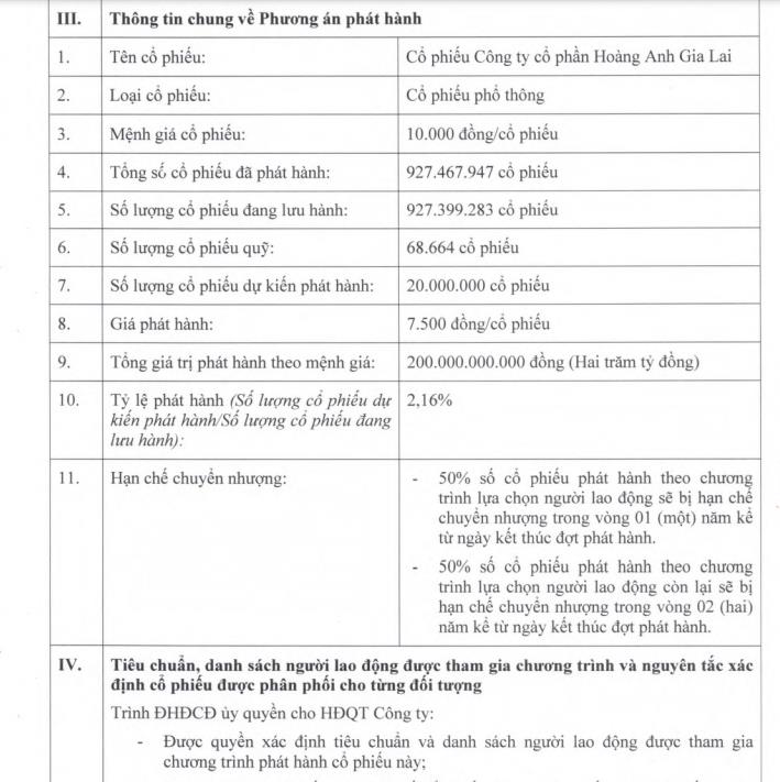 Trong trường hợp cổ phiếu không phát hành hết, Hội đồng quản trị HAGL sẽ toàn quyền quyết định về điều kiện và đối tượng phát hành số cổ phiếu chưa phân phối hết với giá bán không thấp hơn giá phát hành nêu trên. Thời gian phát hành sẽ được thực hiện từ ngày đầu của năm thứ 3 kể từ sau ngày được Đại hội đồng cổ đông thông qua phương án.
