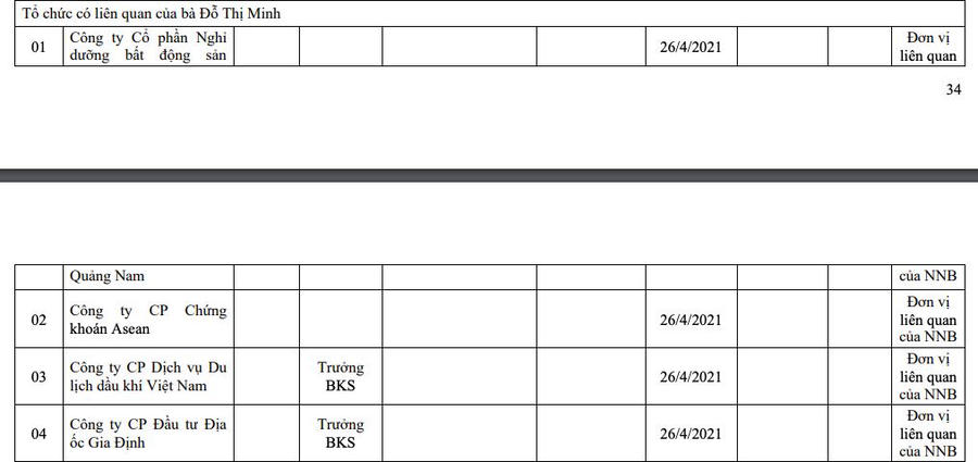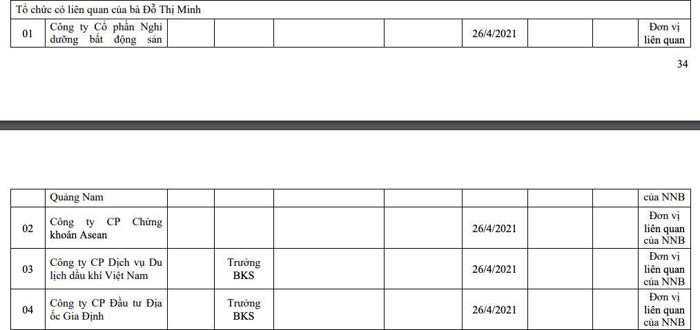 Theo báo cáo quản trị năm 2024 công bố ngày 23/1/2025 của Cảng Sài Gòn, bà Đỗ Thị Minh hiện là trưởng ban kiểm soát của Công ty cổ phần Dịch vụ Du lịch dầu khí Việt Nam và Công ty cổ phần Đầu tư Địa ốc Gia Định. Bà cũng là bên liên quan của Công ty cổ phần Nghỉ dưỡng Bất động sản Quảng Nam và Công ty cổ phần Chứng khoán Asean.