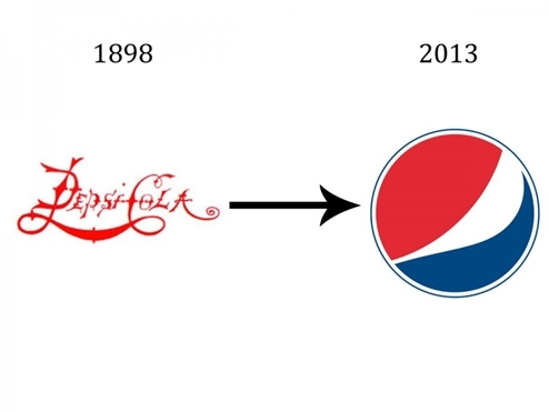 Theo xu hướng chung của nhiều thương hiệu, Pepsi cũng đã thay đổi, bỏ bớt chữ trông có phần rối mắt, thay vào đó là biểu tượng logo hình tròn với 3 màu đỏ - trắng - xanh. Logo đầu tiên của Pepsi thể hiện xu thế vào cuối thế kỷ XIX khi các thiết kế càng phức tạp thì càng tốt.