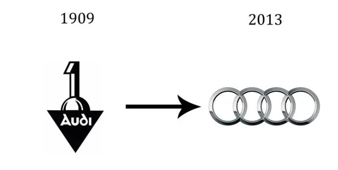 Tuy nhiên, vào năm 1932, 4 công ty gồm Horch, Wanderer. DKW và Audi hợp nhất trở thành một. Logo cũ đã không còn phù hợp khi không thể đại diện cho cả 4 công ty. Do đó, thiết kế logo mới đã xuất hiện - 4 vòng tròn với 4 biểu tượng của 4 công ty được kết nối, tượng trưng cho sự thống nhất, là sự liên minh. Tới năm 2013, các nhà thiết kế đã đơn giản hóa logo Audi đưa về dạng phẳng và duy trì tới ngày nay.