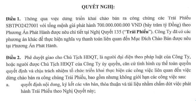Dừng triển khai chào bán trái phiếu ra công chúng
